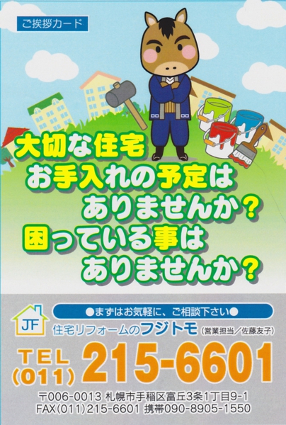 ・只今、住宅リフォームのフジトモでは、「ご挨拶カード」を配布しております。